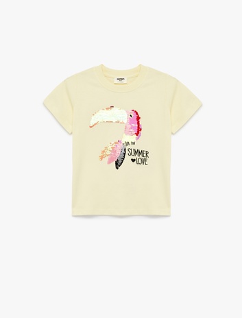 Pullu Payetli Kısa Kollu Bisiklet Yaka Pamuklu Tişört Sepete Ekle