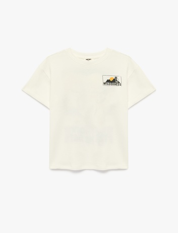 Pamuklu Kısa Kollu Bisiklet Yaka Baskılı Tişört Sepete Ekle