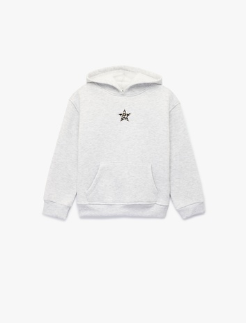Uzun Kollu Yıldız Detaylı Kanguru Cepli Kapşonlu Sweatshirt Sepete Ekle