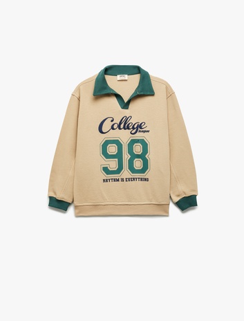 Pamuklu Uzun Kollu Kolej Nakışlı Polo Yaka Sweatshirt Sepete Ekle