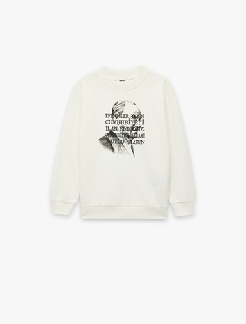 Pamuklu Atatürk Baskılı Bisiklet Yaka Uzun Kollu Sweatshirt Sepete Ekle