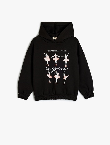 Kız Çocuk Baskı Detaylı Uzun Kollu Şardonlu Kapşonlu Sweatshirt