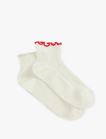 Fırfırlı Ayıcık İşleme Detaylı Çizgili Çorap Sepete Ekle