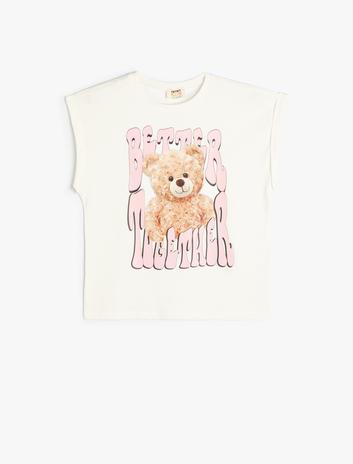 Kız Çocuk Tişört Kısa Kollu Bisiklet Yaka Ayıcık Baskılı Pamuklu