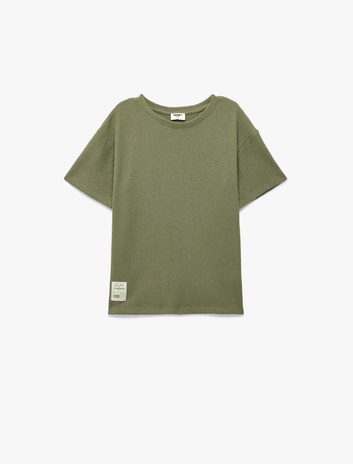 Etiket Detaylı Bisiklet Yaka Kısa Kollu Tişört Sepete Ekle