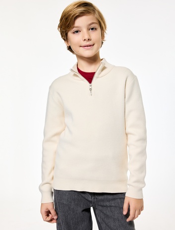 Erkek Çocuk Yarım Fermuarlı Uzun Kollu Viskon Karışımlı Triko Kazak