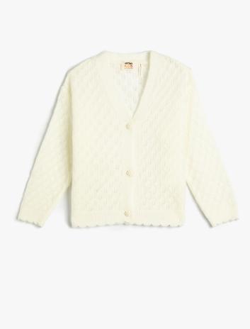 Kız Çocuk Crop Ajurlu Hırka V Yaka Uzun Kollu