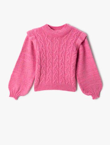 Kız Çocuk Örgü Kazak Saç Örgü Detaylı Uzun Balon Kollu