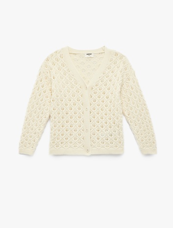 Kız Çocuk Rahat Kalıp Ajurlu Uzun Kollu V Yaka Triko Hırka