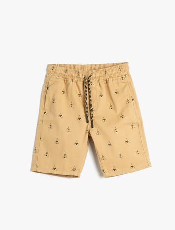 Erkek Çocuk Chino Şort Beli Bağlamalı Cepli Pamuklu Desenli