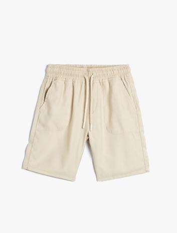 Erkek Çocuk Chino Şort Cepli Beli Lastikli Bağlamalı Pamuklu