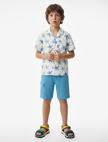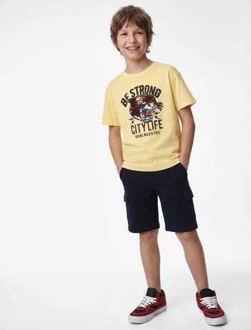 Erkek Çocuk Pamuklu Beli Bağcıklı Baskılı Cepli Şort