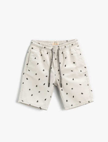 Baskılı Kısa Şort Pamuklu Beli Bağcıklı Sepete Ekle
