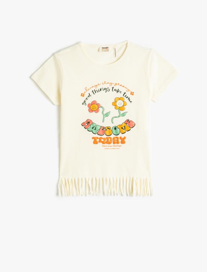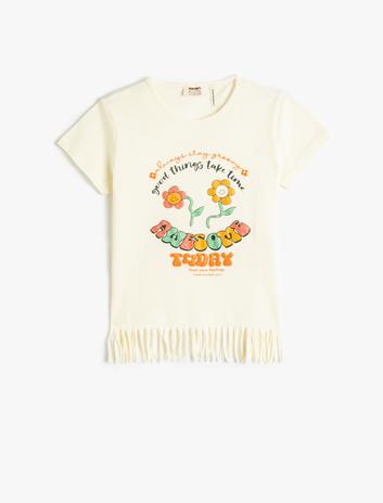 Kız Çocuk Tişört Püsküllü Kısa Kollu Baskılı Simli Pamuklu