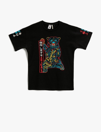 Hayvan Baskılı Tişört Kısa Kollu Bisiklet Yaka Pamuklu Sepete Ekle