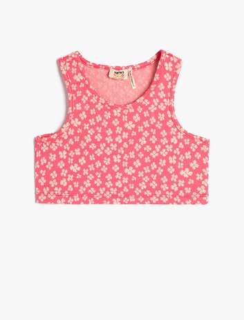 Kız Çocuk Crop Üst Kolsuz Yuvarlak Yaka Çiçekli