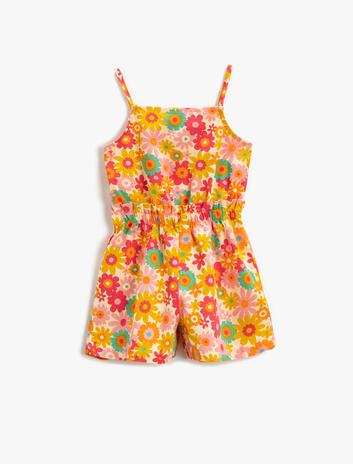 Keten Karışımlı Şort Tulum Çiçekli Sepete Ekle