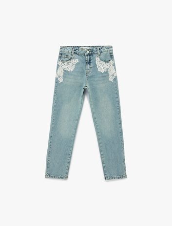Dantel Detaylı Pamuklu Mom Fit Denim Pantolon Sepete Ekle