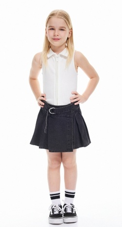 Kız Çocuk Şort Beli Bağlamalı Düğme Detaylı