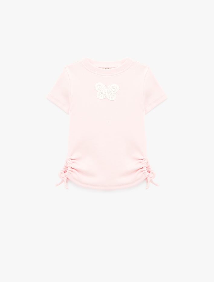 Kelebek İşlemeli Kısa Kollu Bisiklet Yaka Pamuklu Tişört Sepete Ekle