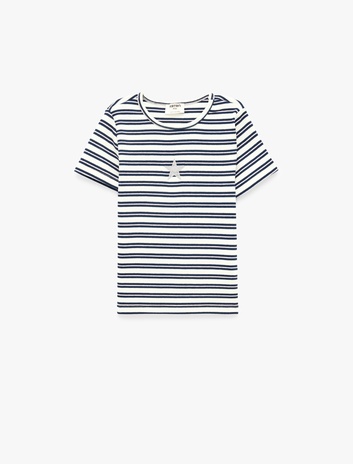 Kısa Kollu Bisiklet Yaka Simli Yıldız Detaylı Pamuklu Çizgili Tişört Sepete Ekle