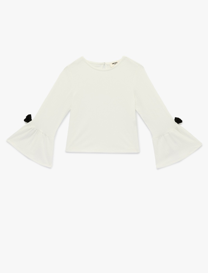 Uzun Kollu Bisiklet Yaka Bürümcük Fiyonklu Bluz Sepete Ekle