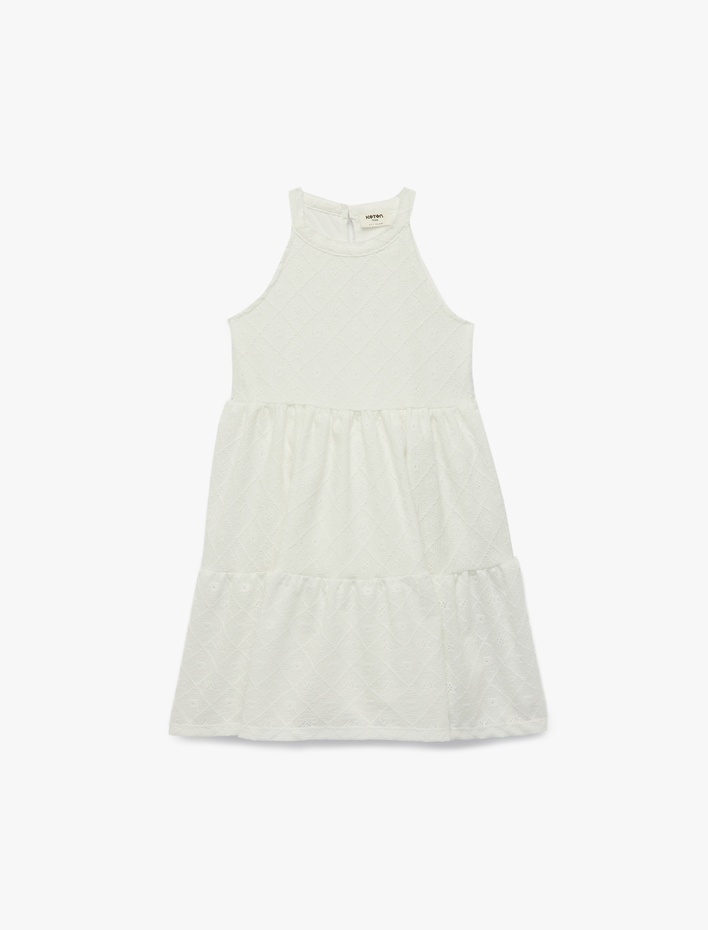 Brodeli Katlı Kolsuz Halter Yaka Elbise Sepete Ekle