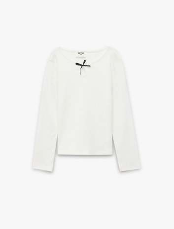 Uzun Kollu Bisiklet Yaka Pamuklu Fiyonklu Tişört Sepete Ekle