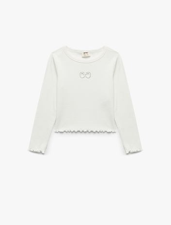 Kız Çocuk Uzun Kollu Bisiklet Yaka Fiyonk Pencere Detaylı Kaşkorse Tişört
