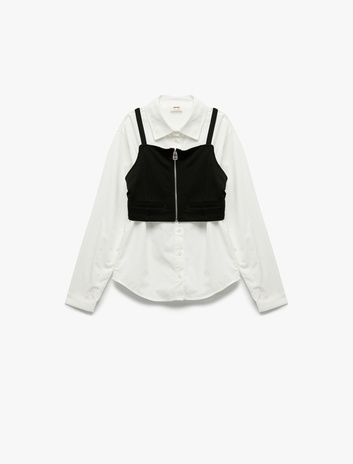Fermuarlı Askılı Üst Detaylı Pamuklu Uzun Kollu Gömlek Sepete Ekle