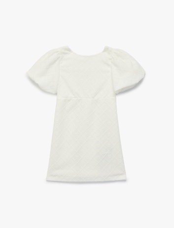 Fiyonk Detaylı Bisiklet Yaka Pencere Detaylı Gipeli Kısa Kollu Elbise Sepete Ekle