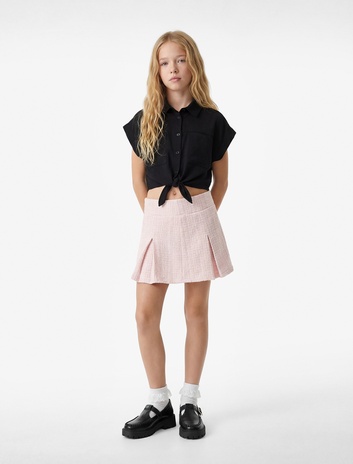 Kız Çocuk Diz Üstü Pile Detaylı Mini Tüvit Etek