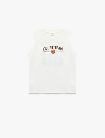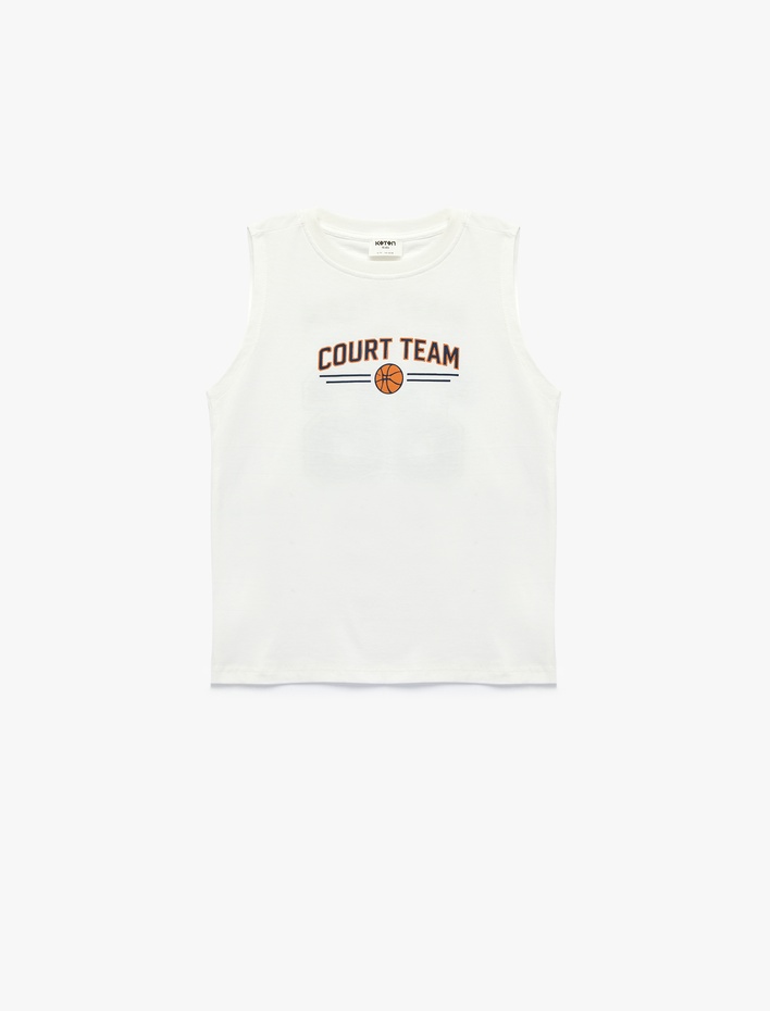 Pamuklu Kolsuz Bisiklet Yaka Baskılı Oversize Atlet Sepete Ekle