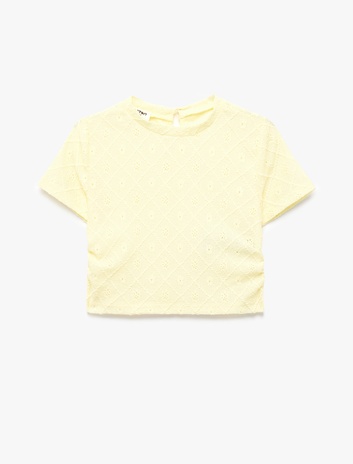 Bisiklet Yaka Kısa Kollu Brodeli Bluz Sepete Ekle