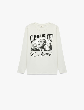 Atatürk ve Cumhuriyet Baskılı Pamuklu Uzun Kollu Bisiklet Yaka Tişört Sepete Ekle