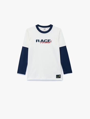 Pamuklu Bisiklet Yaka Uzun Kollu Baskılı Tişört Sepete Ekle