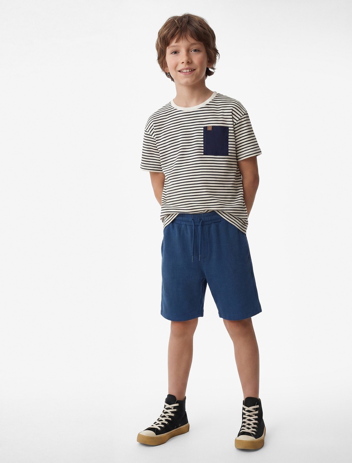 Erkek Çocuk Pamuklu Beli Bağlamalı Dokulu Basic Şort