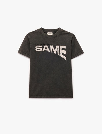 Pamuklu Kısa Kollu Bisiklet Yaka Baskılı Tişört Sepete Ekle