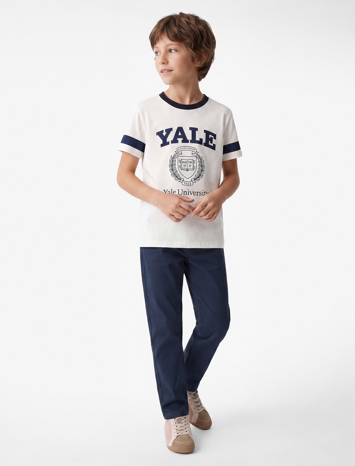Erkek Çocuk Pamuklu Kısa Kollu Bisiklet Yaka Lisanslı Yale Baskılı Oversize Tişört