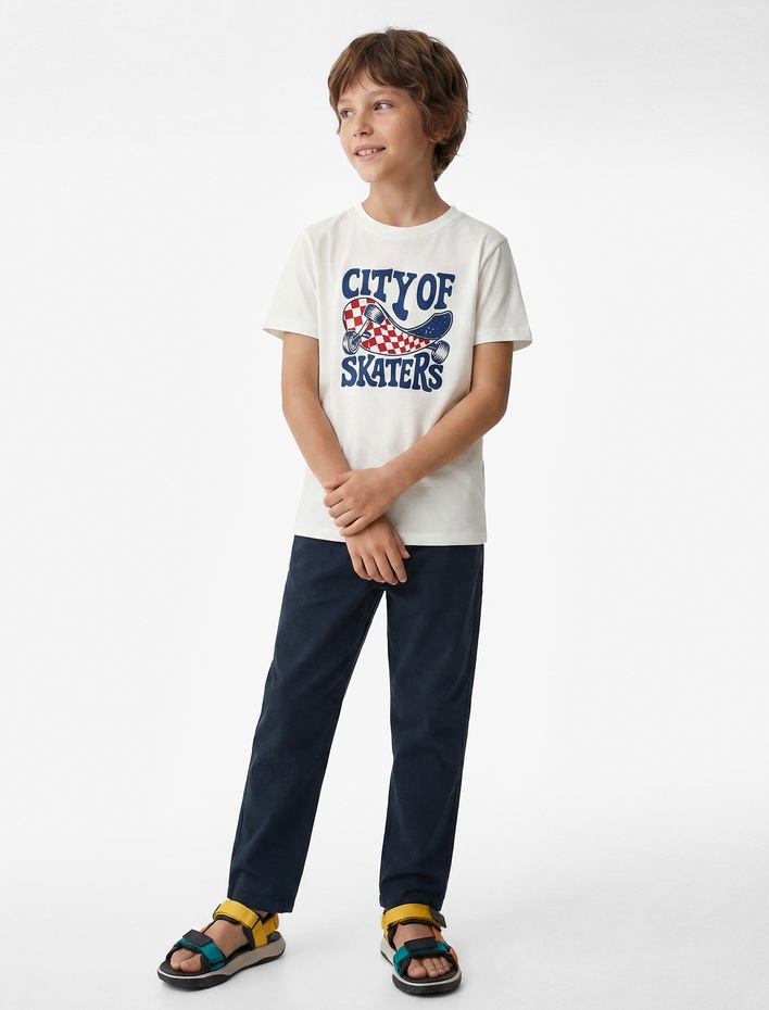 Pamuklu Bisiklet Yaka Kısa Kollu Kaykay Temalı Baskılı Tişört Sepete Ekle