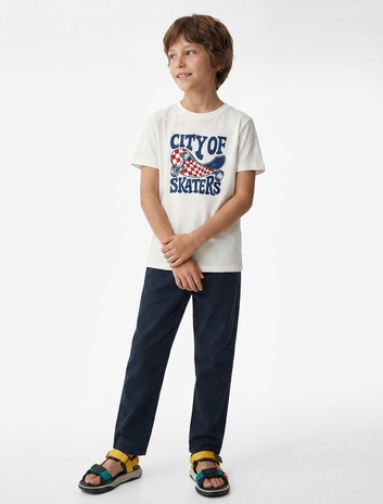 Erkek Çocuk Pamuklu Bisiklet Yaka Kısa Kollu Kaykay Temalı Baskılı Tişört