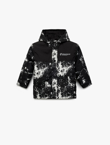 Erkek Çocuk Uzun Kollu Baskılı Kapşonlu Mevsimlik Mont