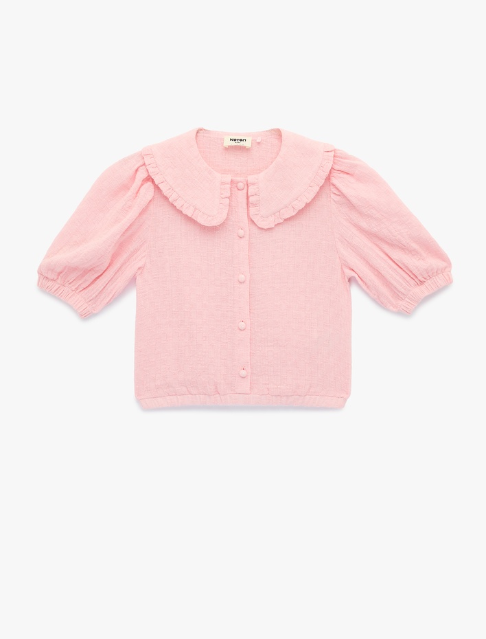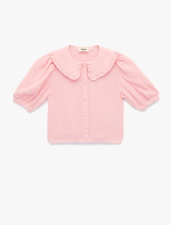 Kız Çocuk Viskon Karışımlı Kısa Kollu Düğmeli Crop Bebe Yaka Bluz