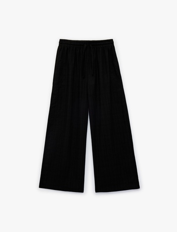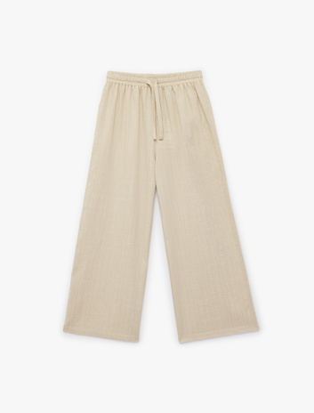 Pamuk Viskon Karışımlı Rahat Kalıp Beli Lastikli Bağlamalı Geniş Paça Pantolon Sepete Ekle