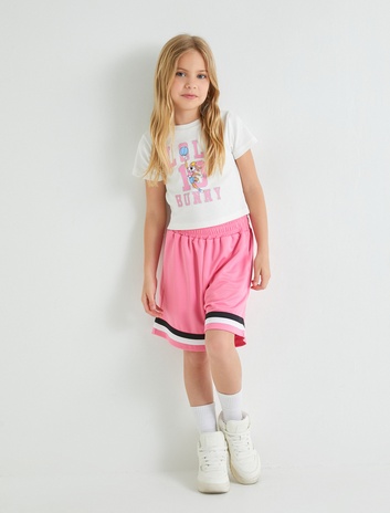 Kız Çocuk Şort Renk Bloklu Beli Lastikli