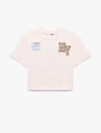 Pamuklu Kısa Kollu Bisiklet Yaka Baskılı Tişört Sepete Ekle