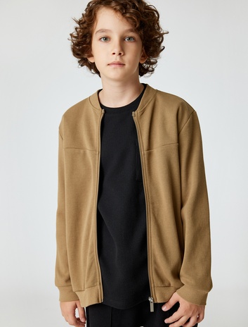 Erkek Çocuk Yuvarlak Yaka Fermuar Kapamalı Pamuklu Ceket