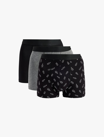 Baskılı Bel Detaylı Pamuklu 3'lü Boxer Seti