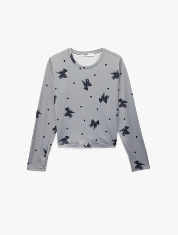 Tavşan Baskılı Uzun Kollu Bisiklet Yaka Pamuklu Pijama Takımı