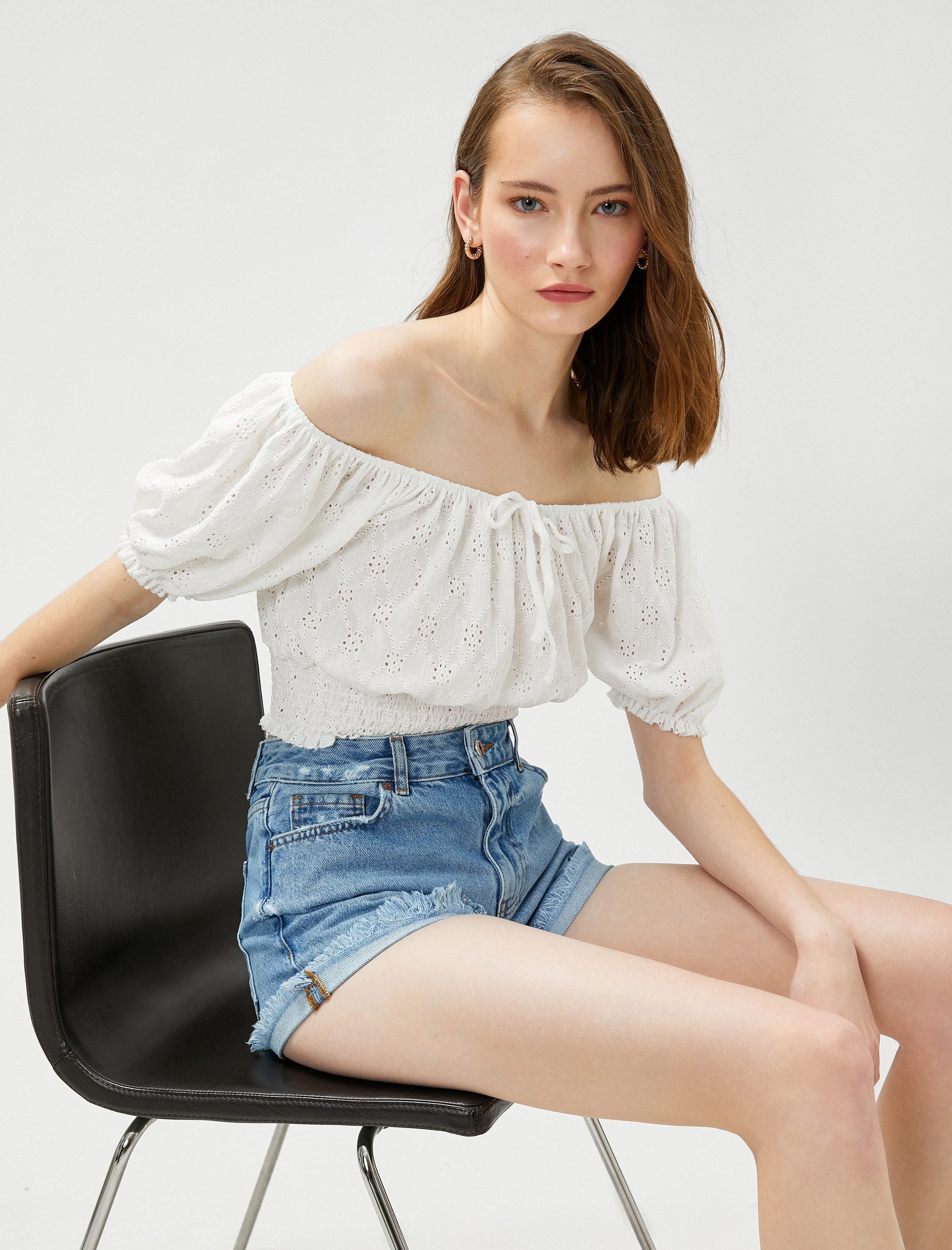 Sıcak günlerde şık şortlarınızı tamamlayacak omzu açık, gipeli, fisto crop bluza mutlaka şans verin!